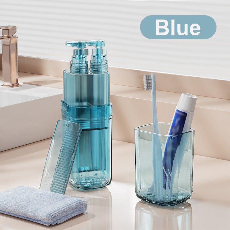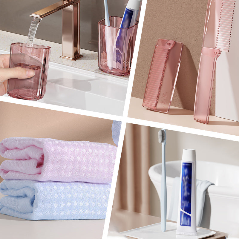 8-IN-1 FUNCTIONALITY - Includes 1 toothbrush, 1 toothpaste, 1 folding comb, 1 towel, 2 rinsing cups, and 2 travel bottles, eliminating the need to pack multiple individual items.