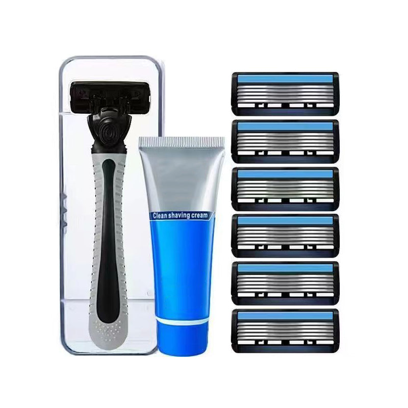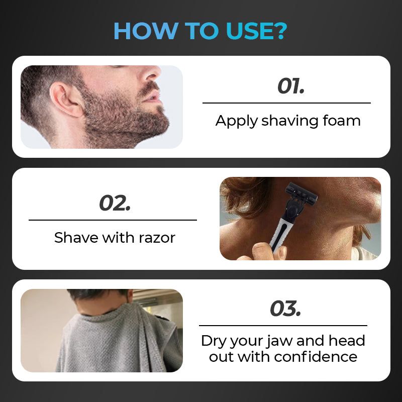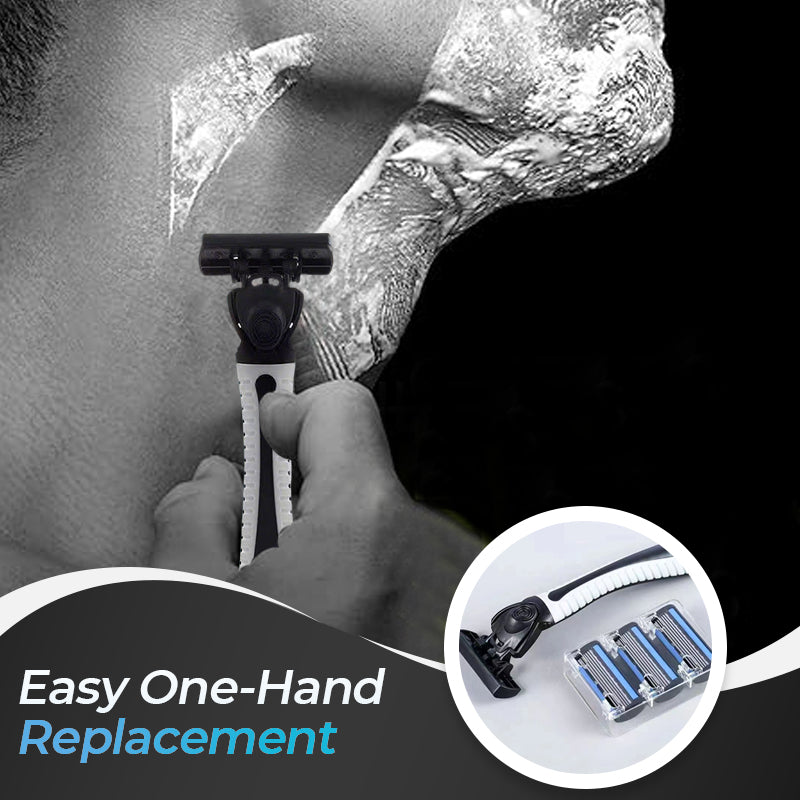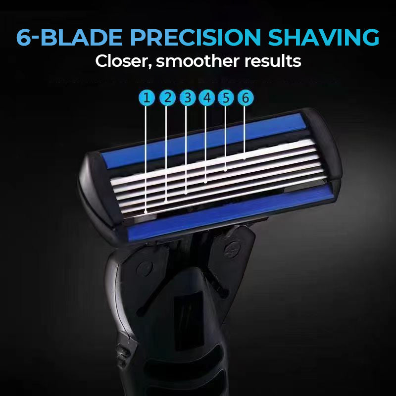 PROGRESSIVE 6-BLADE SYSTEM: Engineered with six precision-aligned blades that progressively cut hair, reducing tugging and delivering an ultra-close shave. The angled arrangement follows facial contours, while curved L-shaped blades ensure even pressure distribution for smooth results.