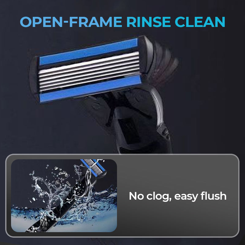 OPEN-STRUCTURE BLADES FOR EASY RINSING: The L-shaped blade design with an open frame allows water to flow freely during rinsing, flushing out trapped hair and shaving residue instantly. This prevents clogging and maintains peak performance, ensuring hygienic, low-maintenance use after every shave.