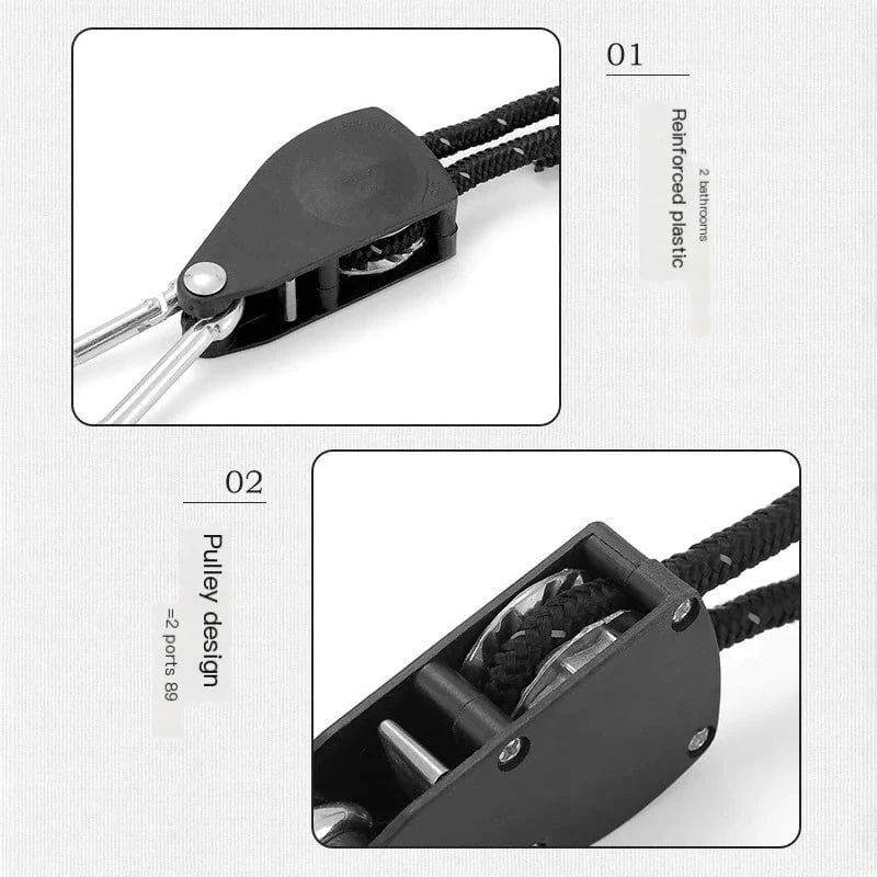Multi-purpose: The adjustable rope can use as a hanger rope for your grow room to hanging pants,and you also can use as tie down straps for your kayak and canoe,or any medium weight cargo to the roof rack of car,trailer.