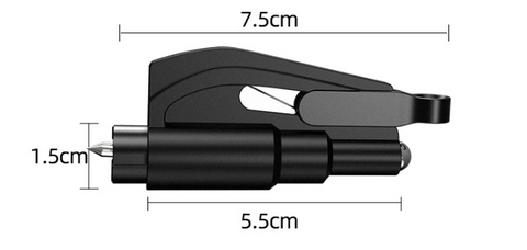 Pull out the escape device quickly from the key chain, then pull out the buckle, align the blade to the seat belt, cut it off quickly, and get out of the emergency.