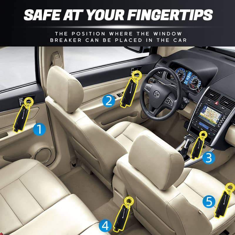 In case of emergency, you can use your car kit to break the window, remove the cap, press the escape device to the end, heard a bang, broken glass, emergency escape.