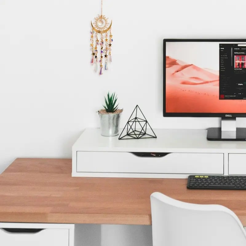 🌈Rainbow Maker: Suncatcher has a lustrous metal frame with sun, moonand stars patterns. Artificial crystals and pendants catchsunlight, creating a dreamy light - shadow effect. ltsunique design, fine craftsmanship and strongdecorativeness make it a captivating art piece.