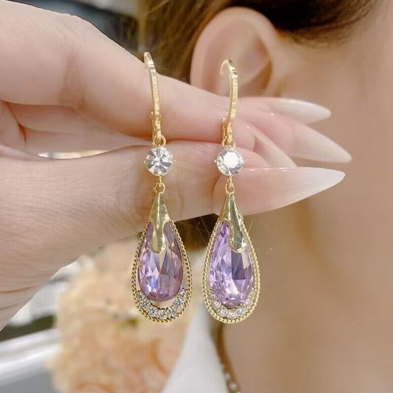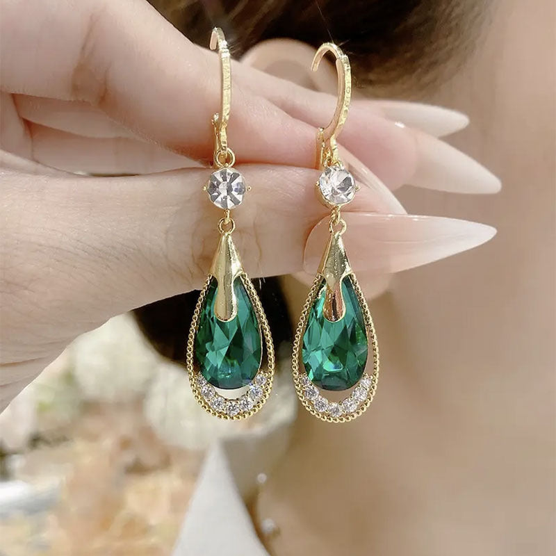 Crystal Water Drop Openwork Earrings