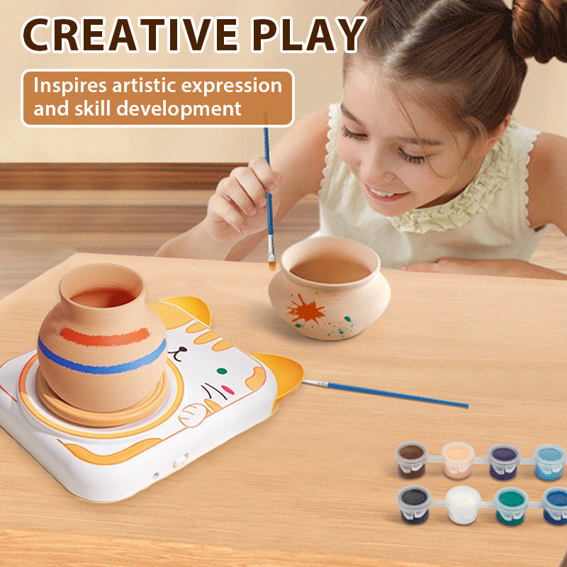 ADORABLE ANIMAL DESIGNS – Featuring cute cat, bunny, puppy, and cow styles, this pottery wheel makes crafting extra delightful! The simple design lets kids start creating instantly—no complicated setup needed. Includes everything for a complete experience.