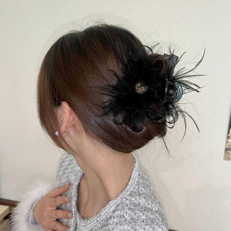 Enhance your hairdo with our exquisite Feather Mesh Plush Hair Clip Jewelry. Designed to add a dash of elegance and charm to any hairstyle, this accessory is perfect for special occasions, parties, or even everyday wear. Made with premium materials and attention to detail, our hair clip combines the delicate beauty of feathers with the softness of plush fabric, creating a unique and eye-catching accessory that will make you stand out from the crowd. Elevate your style and turn heads wherever you go with our Feather Mesh Plush Hair Clip Jewelry! It is a creative gift for your girl.
