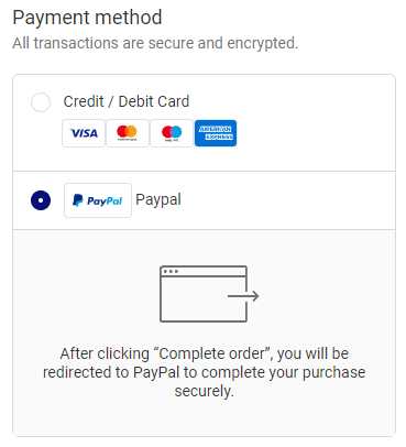 - If you don't have a PayPal account, we accept all major credit cards: simply select "PayPal" and click the "Pay with debit or credit card" button.