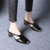 🏖️Summer Specials🌴Women's Casual Metal Square Toe Mid Block Heel Mules