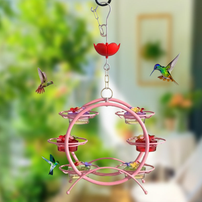 1 Set * Outdoor Unique Hummingbird Metal Hanging Feeder Set