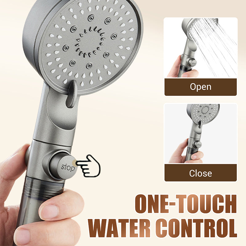 ONE-TOUCH WATER CONTROL: The push-button design allows for instant on/off control of the water flow, eliminating the need to adjust a knob. It saves water while providing convenient fingertip control during showers.