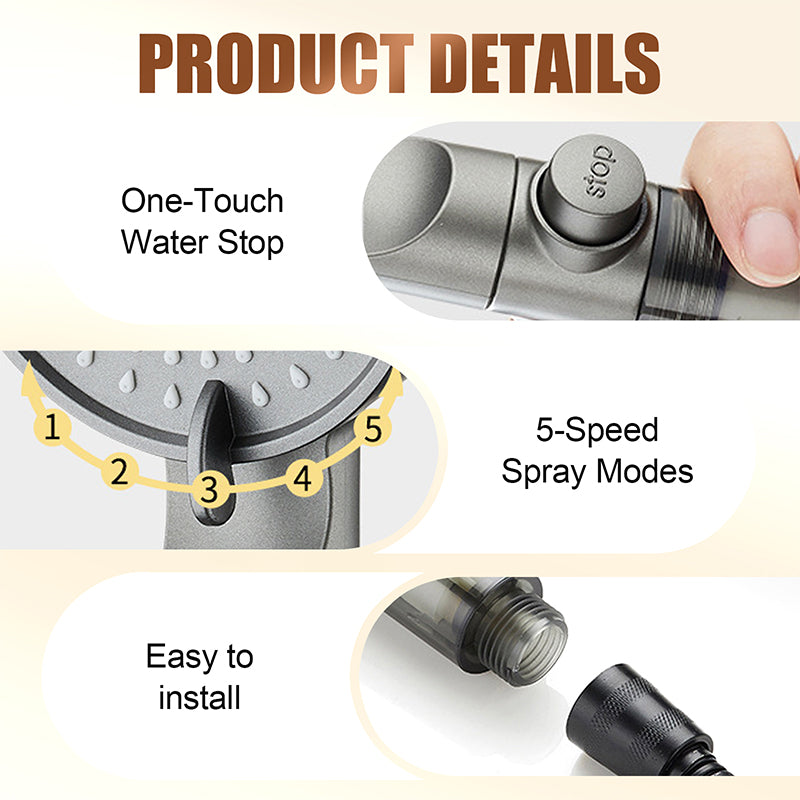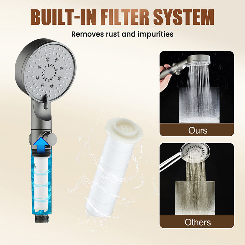 BUILT-IN FILTER SYSTEM: Built-in PP cotton filter removes rust, sand, and impurities. Keeps water clean and fresh for healthier skin and a more hygienic shower experience.