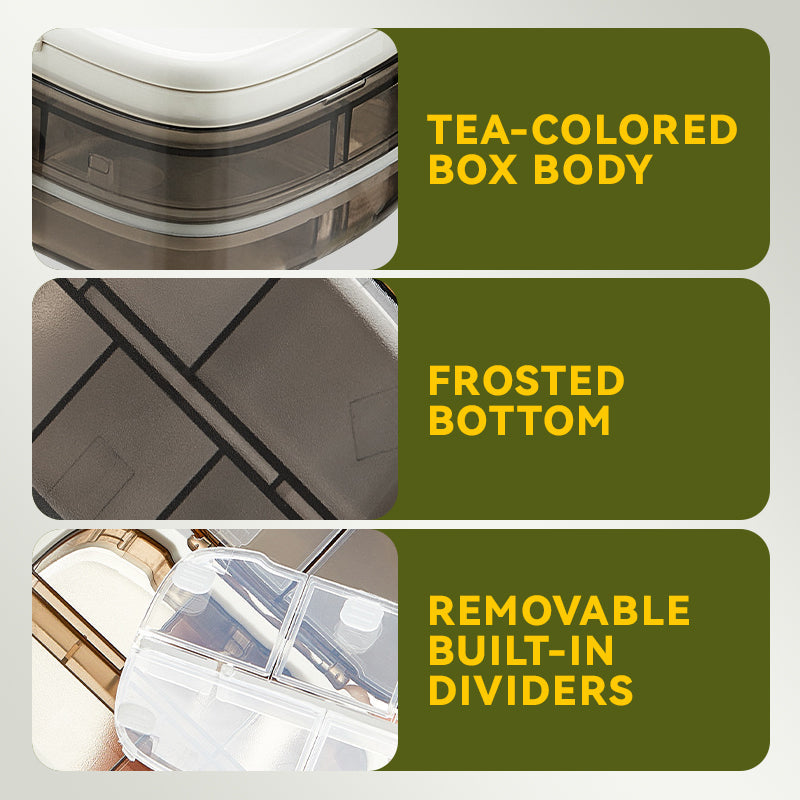 INTELLIGENT TEN-COMPARTMENT DESIGN- Ten independently sealed compartments completely isolate different nutritional supplements. Each compartment accommodates 2-3 standard capsules or tablets, facilitating daily dosage management while preventing cross-contamination of odours and flavours between compartments.