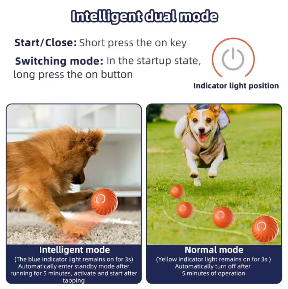 ✅INTELLIGENT MODE INNOVATION: The Self-Rolling Ball Dog Toy offers two different modes, with a normal mode and a smart mode. You can switch between modes for different pet activities. Once activated, it rolls and rumbles at different frequencies. It is a great way to engage your pet and inspire their natural hunting spirit.