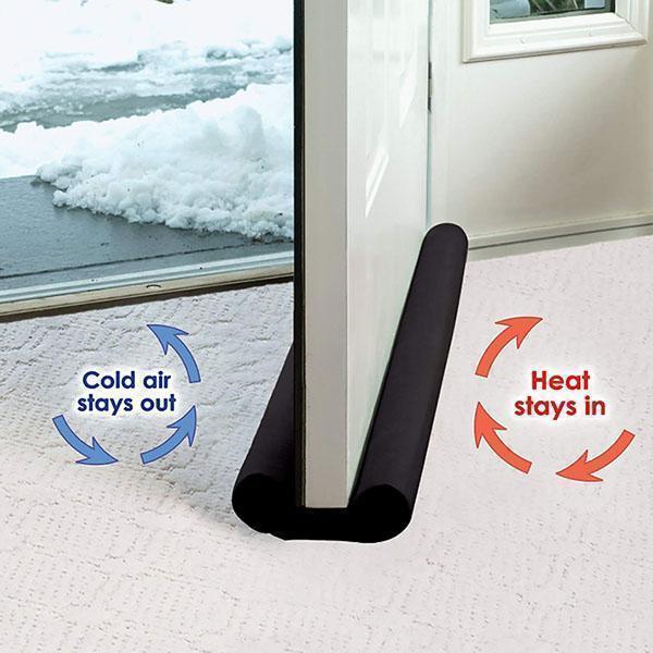 - Draft Door Stopper conveniently moves with your door - no need to constantly bend down to re-position! It has a vinyl cover which is easy to cut to a suitable length and very easy to clean. Double-Sided = Double Protection! Also great for blocking noise and fumes.