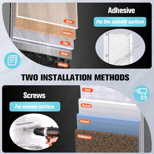 Our self-adhesive baseball cap organizer can be installed on smooth surfaces like closets, doors, marble, tiles, and even refrigerators! For rough surfaces such as painted or concrete walls, simply use screws for a secure fit. It’s the perfect solution to create extra storage space in limited areas! 🏠💼