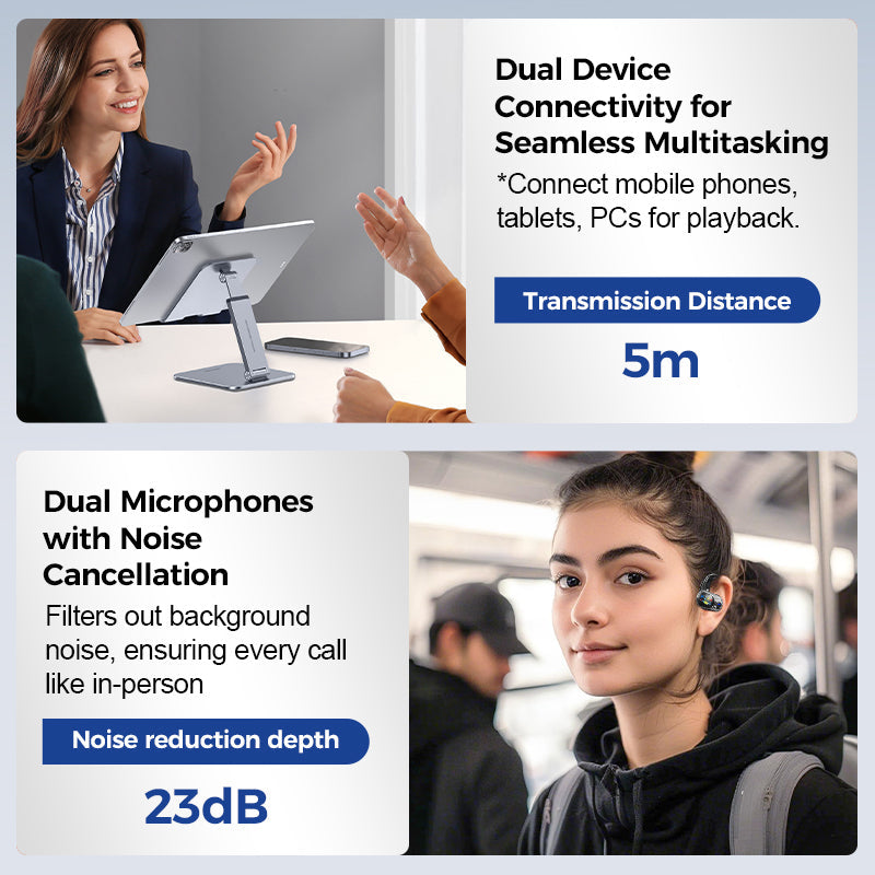 Waterproof Open Ear Earbuds with Noise Cancelling
