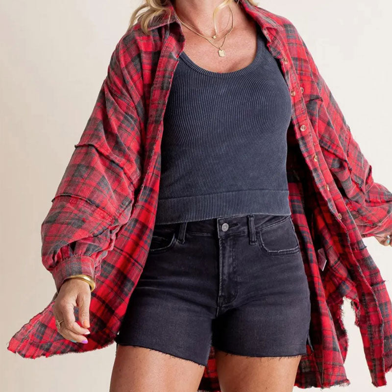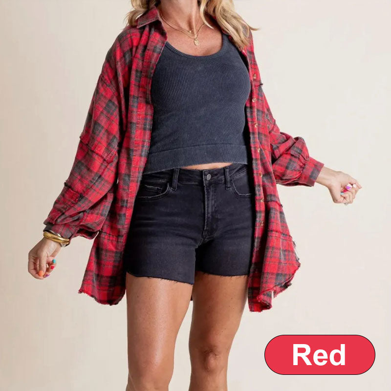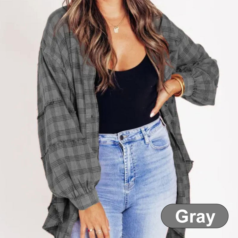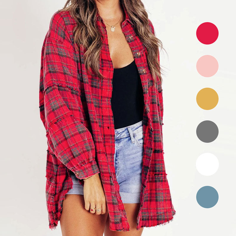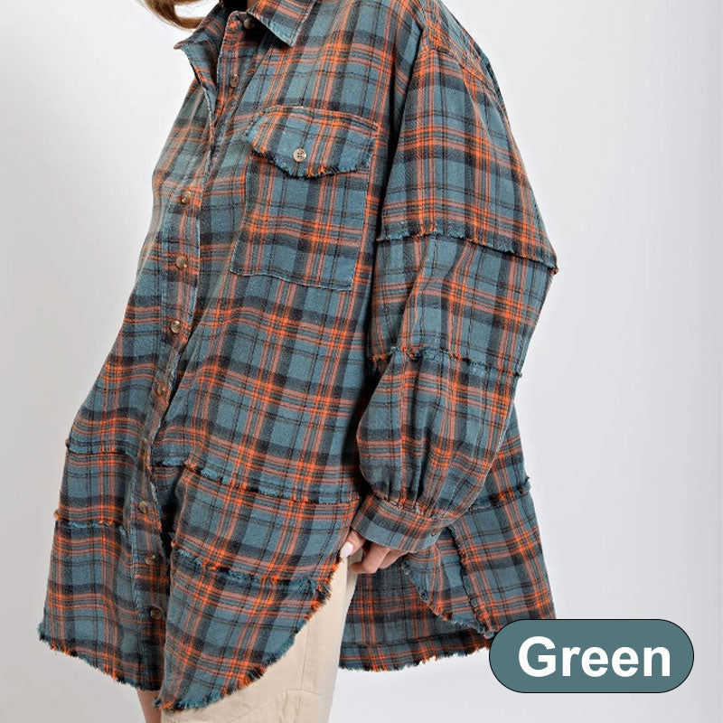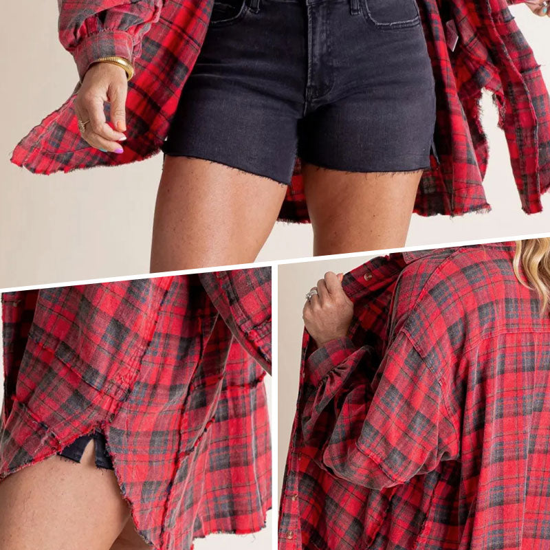 STYLISH DESIGN - This piece features a button-down front, a convenient front pocket, and trendy raw edge hems. With its super oversized and longer fit, it adds a laid-back yet stylish vibe to any outfit.