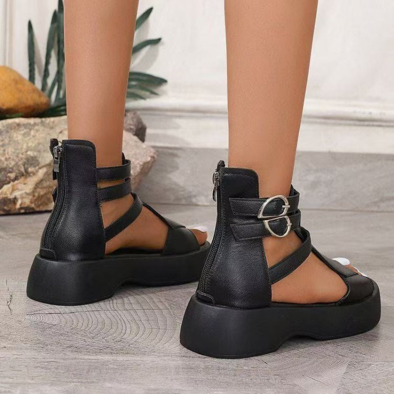 CONVENIENT ZIPPER AND CLOSER - The easy-to-use zip on the back and the distinctive metal buckles make for an uncomplicated wearing experience. Effortless on and off function for comfort on the go.