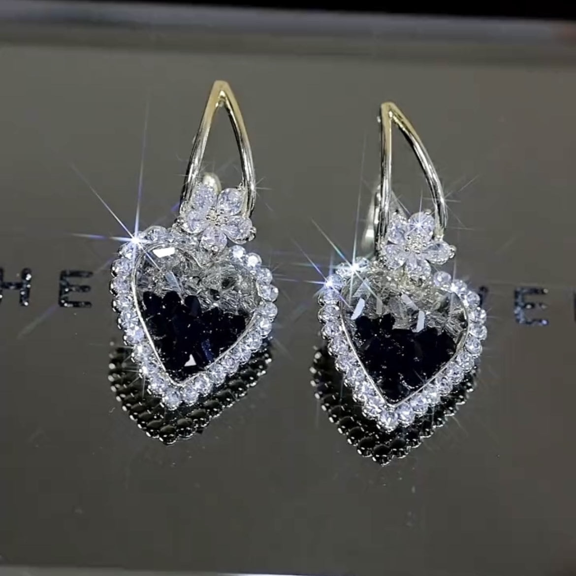 Super Sparkle Vintage Style Zirconia Heart Stud Earrings